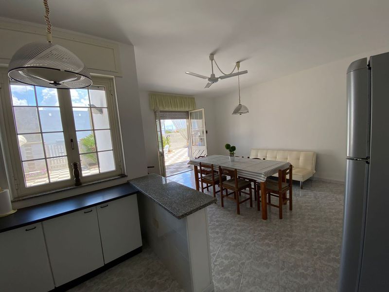 Bellissima villa vacanza a 100 mt circa dal mare , formata da 2 camere da letto,la prima con letto matrimoniale e l'altra con letto matrimoniale e letto singolo ,ampia cucina e comodo spazio esterno che circonda la casa per poter mangiare fuori e parcheggiare l'auto per un totale di 5 posti letto,zona molto ben servita con alimentari, trattorie, bar, pizzeria ,tutto arrivabile a piedi. Scogliera bassa e accessibile per chi desidera la sabbia puo' trovare le favolose spiagge di T.S. giovanni a 3 km circa della casa vacanza e a 5 minuti di macchina .