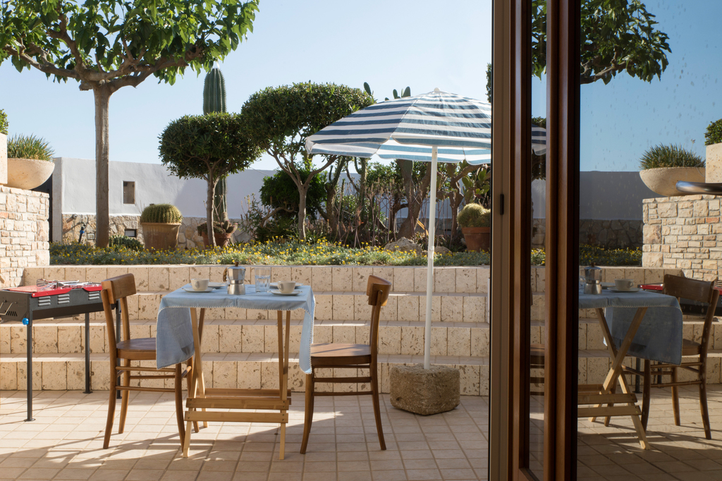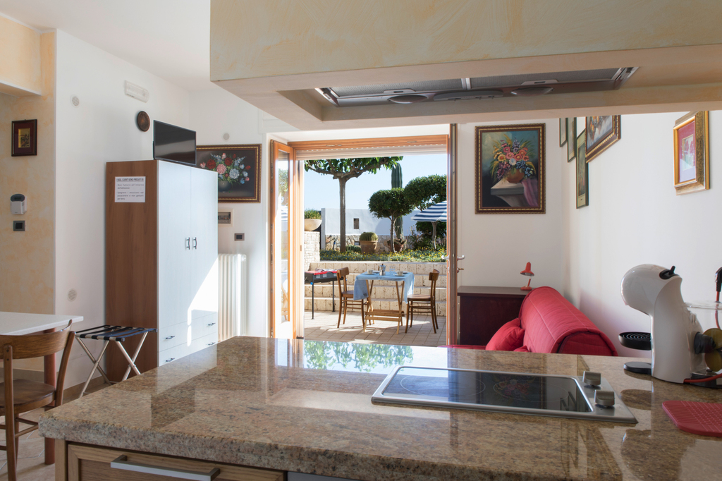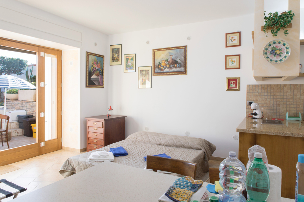 La tavernetta è composta da ampia cucina con divano letto matrimoniale, bagno doccia, dotata di accesso fronte mare indipendente, tv, aria condizionata e cortile esterno per poter mangiare fuori .