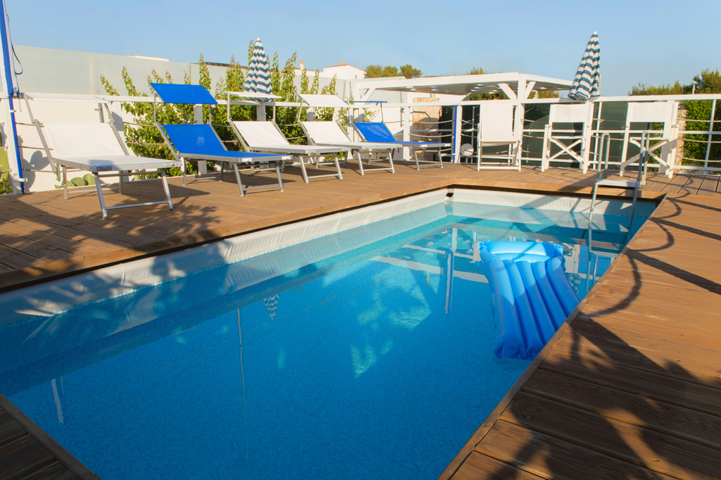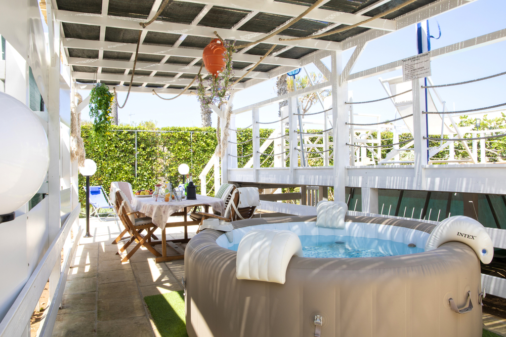 La villa dispone di quattro camere da letto per un totale di 10 posti letto , è dotata di piscina fuori terra con patio e vasca idromassaggio con acqua calda per 4/6 persone , aria condizionata, ampio giardino con barbecue, lavatrice, lavastoviglie, internet wi-fi, zanzariere in tutti gli ambienti, phon, ferro da stiro e asse da stiro, forno, frigo,