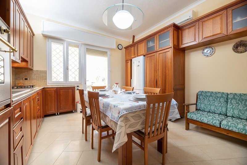 Al piano interrato ampia cucina con divano letto matrimoniale e bagno privato.