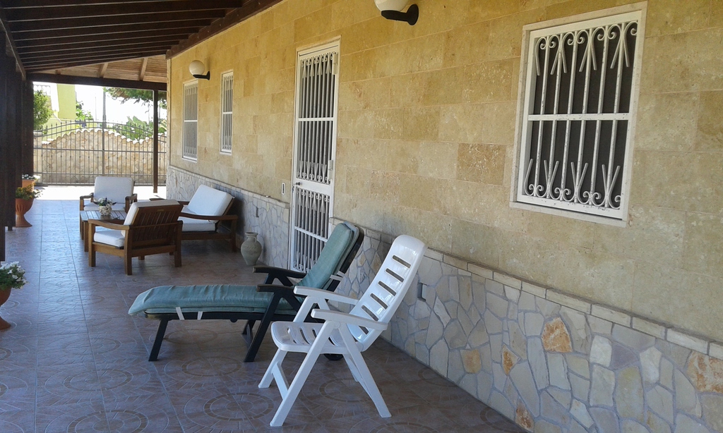 Televisione +condizionatore+ lavatrice+ bagno esterno con doccia + pilozza esterna +punto fuoco + ampio spazio per posti auto +mobili da giardino +zanzariere + ventilatore