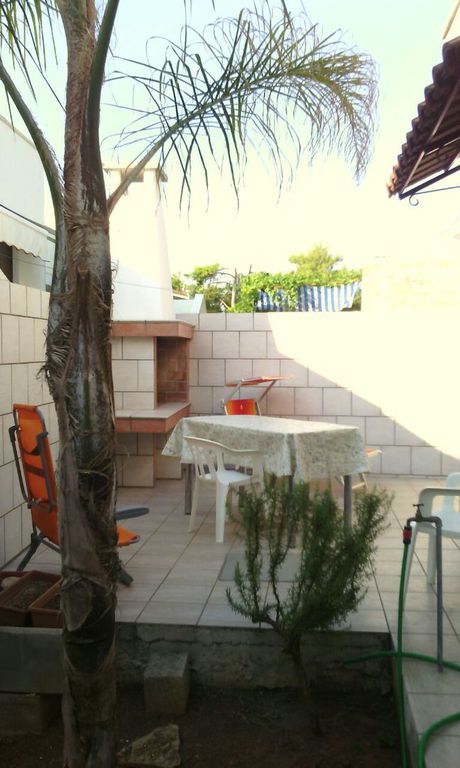 Bella casa indipendente con condizionatore a Marina di Alliste a 50 metri dal mare cristallino del Salento e a pochi minuti dalle splendide spiagge di Torre San Giovanni composta da: ampio soggiorno, due camere da letto per un totale di 5 posti letto, bagno con doccia, disimpegno, cucinino, veranda avanti con gazebo in legno e giardinetto dietro dove poter mangiare fuori utilizzando il caminetto esterno, doccia esterna e posto auto sotto il gazebo. La casa vacanza si trova a pochi metri dalla passeggiata lungo la costa nelle vicinanze troverete pizzerie trattorie ecc sotto casa si trova mare con scogliera bassa e liscia per chi desidera la spiaggia di sabbia la trova a pochissimi km. Luogo ideale per chi vuole vivere sia momenti di relax sia momenti di svago con le sagre locali.