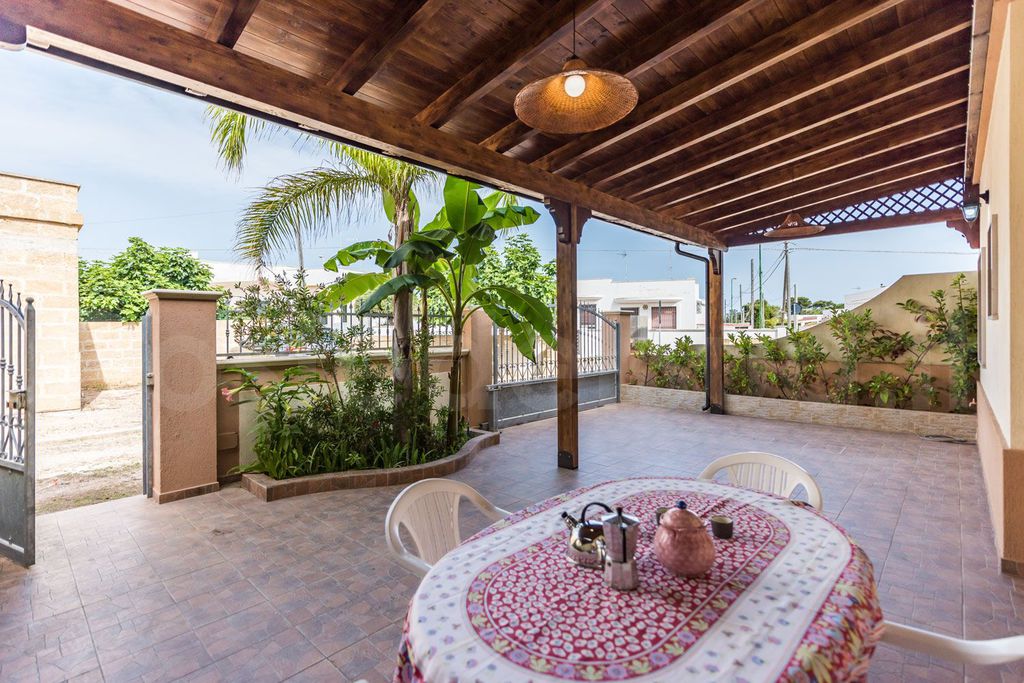 Bellissima villetta di nuova costruzione a 100 mt circa dal mare.La casa vacanza si estende su due livelli, formata da 3 camere da letto,una camera si trova a piano terra composta da letto matrimoniale,le altre due camere si trovano a piano primo una camera formata da letto matrimoniale e letto a castello l'altra camera formata da due letti a castello,cucina tinello con divano letto ,3 bagni di cui uno esterno, ampio spazio antistante per poter mangiare fuori per un totale di 12 posti letto,zona molto ben servita con alimentari, trattorie, bar, pizzeria ,tutto arrivabile a piedi. Scogliera bassa e accessibile con il mare limpido, per chi desidera la sabbia puo' trovare le favolose spiagge di T.S. giovanni a 3 km circa della casa vacanza e a 5 minuti di macchina .