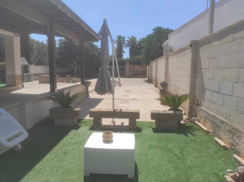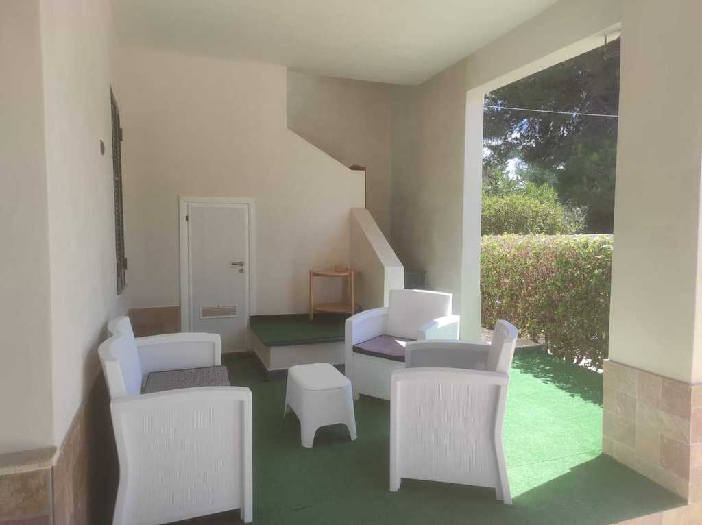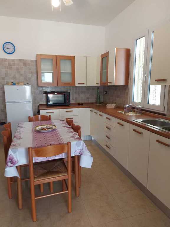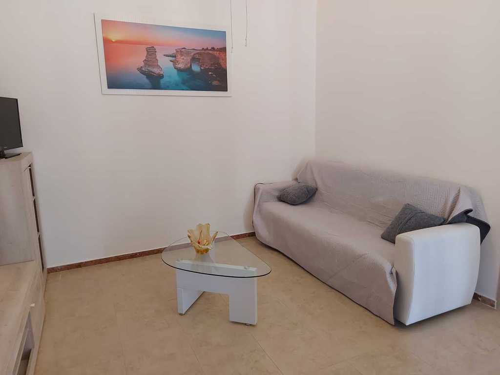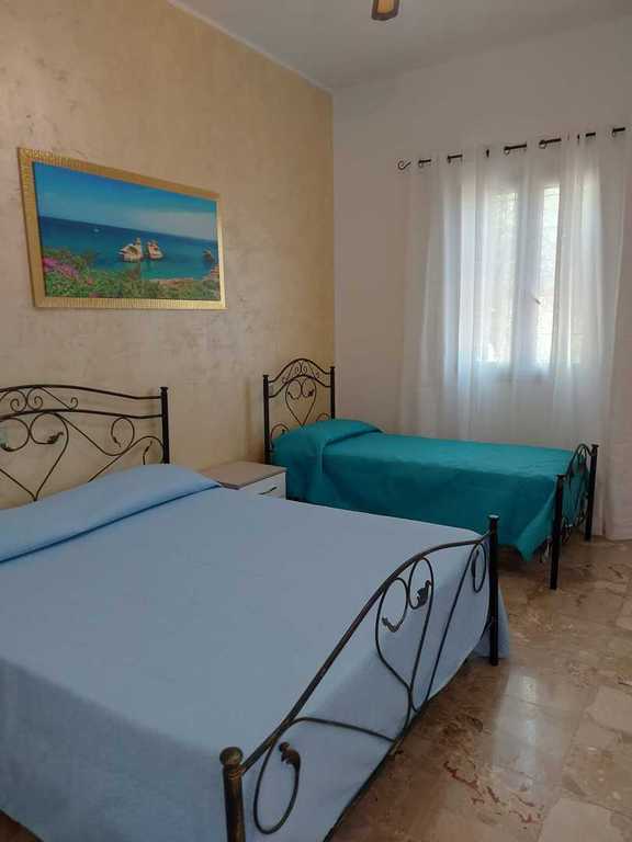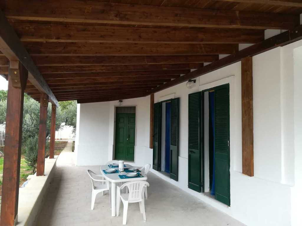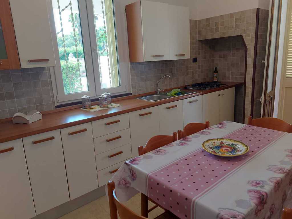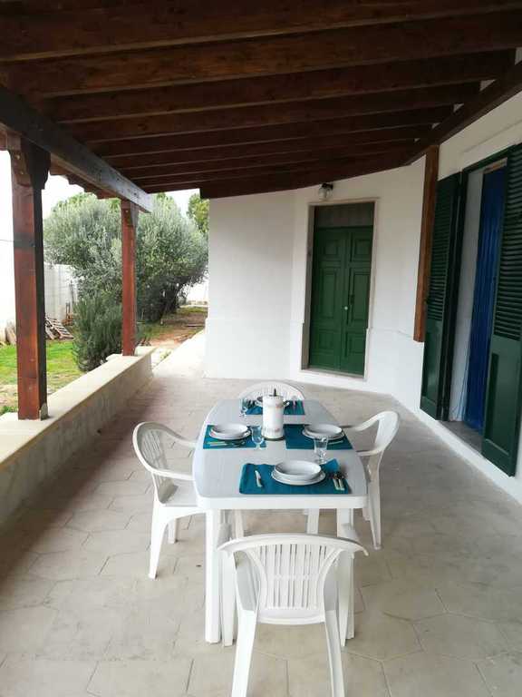 composta da cucina con divano letto, 2 camere letto entrambe con letto matrimoniale e letto singolo, 2 bagni (uno esterno) PER UN TOTALE DI 6 POSTI LETTO, bellissimo spazio con mobili da giardino per poter mangiare fuori. Soluzione ideale per chi desidera trascorrere le vacanze nel salento in completo relax e avere il mare con scoglio basso accessibile a pochi passi e la spiaggia a pochi minuti di macchina,zona molto ben servita con pizzeria,trattoria,alimentari,pescheria,