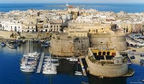 con le sue stradine lastricate da cui balugina spesso uno spicchio di mare,vale la pena rallentare la passeggiata con una sosta presso il verace mercato del pesce,collocato nell'originale fossato dell'imponente castello, per contendersi con i veri gallipolini il pescato del giorno.La fortezza angioina, quasi completamente circondata dal mare ,di recente ristrutturazione e' accessibile dalla citta' vecchia ed offre la possibilita' di immergersi nella storia attraverso torrioni ,gallerie,corridoi e maestose sale.La citta' vecchia sembra annunciarsi con la Fontana greca ,monumento in realta' di origine rinascimentale ,con frontone barocco ,mentre alle sue spalle tra il dondolo delle paranze nel mare si affacciano il Santuario di Santa Maria del Cannetto e la Cappella di Santa Cristina,protettrice della citta' ,santa prediletta dagli uomini del mare.