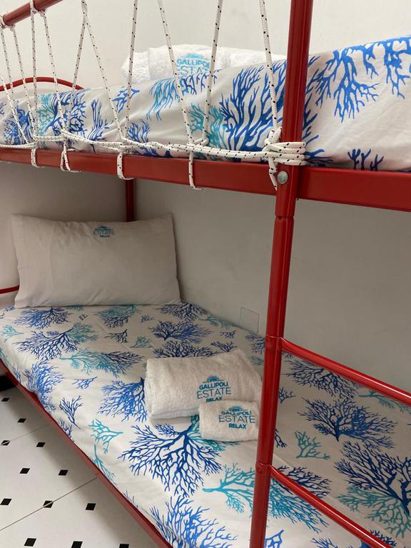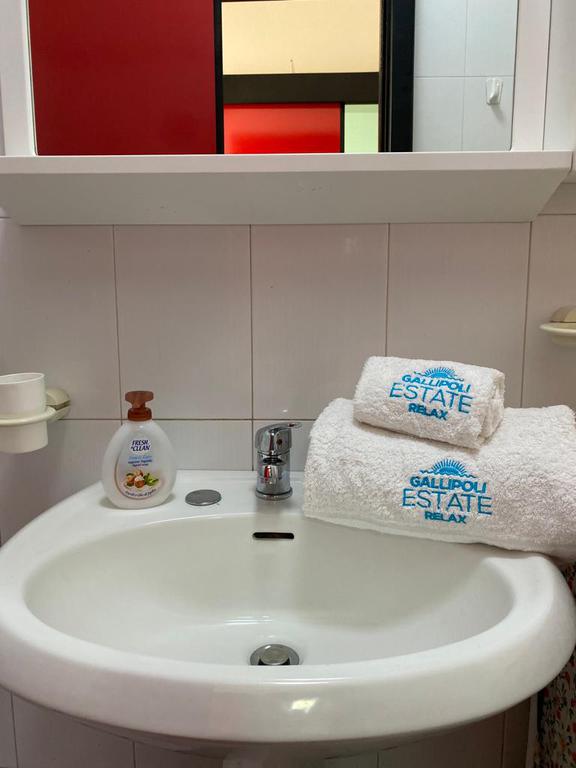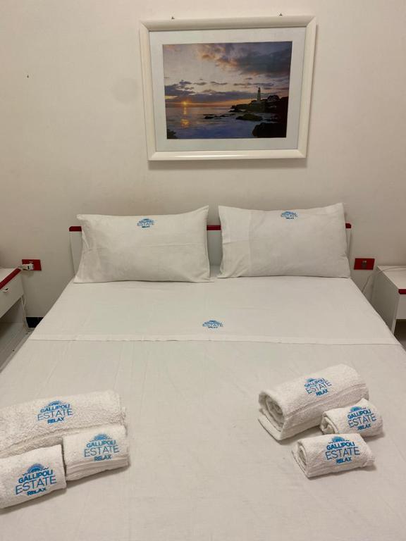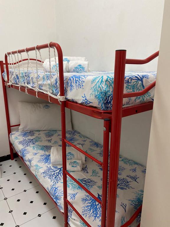 Bellissima casa vacanza in un contesto residenziale a Gallipoli-Baia Verde con condizionatore al primo piano con scala indipendente a 400 metri circa dalle favolose spiagge della Baia Verde di Gallipoli formata da: ingresso, 2 camere da letto una con una stanza con tre letti e una matrimoniale, soggiorno con divano letto e angolo cottura, bagno con doccia, balcone avanti coperta ideale per pranzare e cenare fuori, e veranda dietro coperta ideale per pranzare e cenare fuori, con doccia esterna e posto auto riservato PER UN TOTALE DI 6 POSTI LETTO. Ideale per coloro che vogliono trascorrere le vacanza nella favolosa GALLIPOLI vicinissimo alle più belle spiagge del Salento. Zona molto ben servita con supermercati, bar, pizzerie locali di ogni genere tutto nelle vicinanze e arrivabile a piedi.