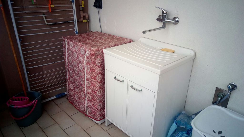 Due televisioni + mobili da giardino + lavatrice + stendino + lavello esterno + asse e ferro da stiro + condizionatore