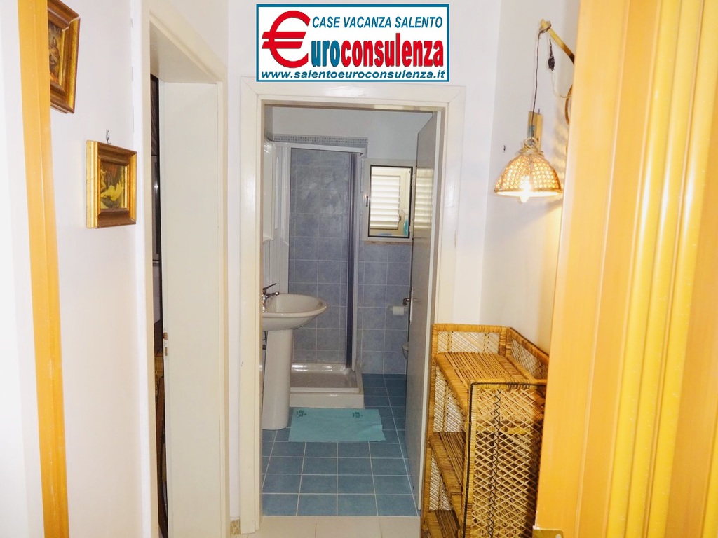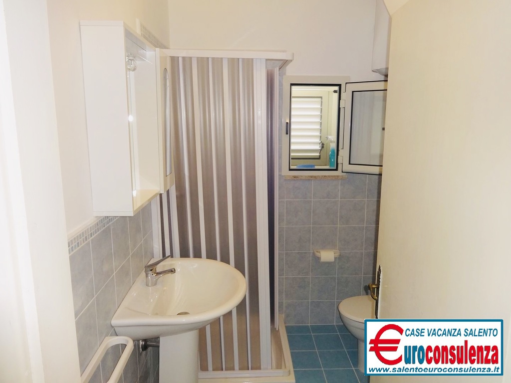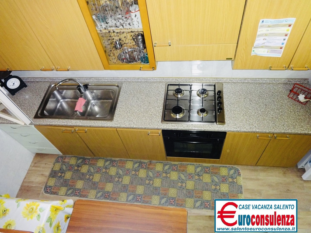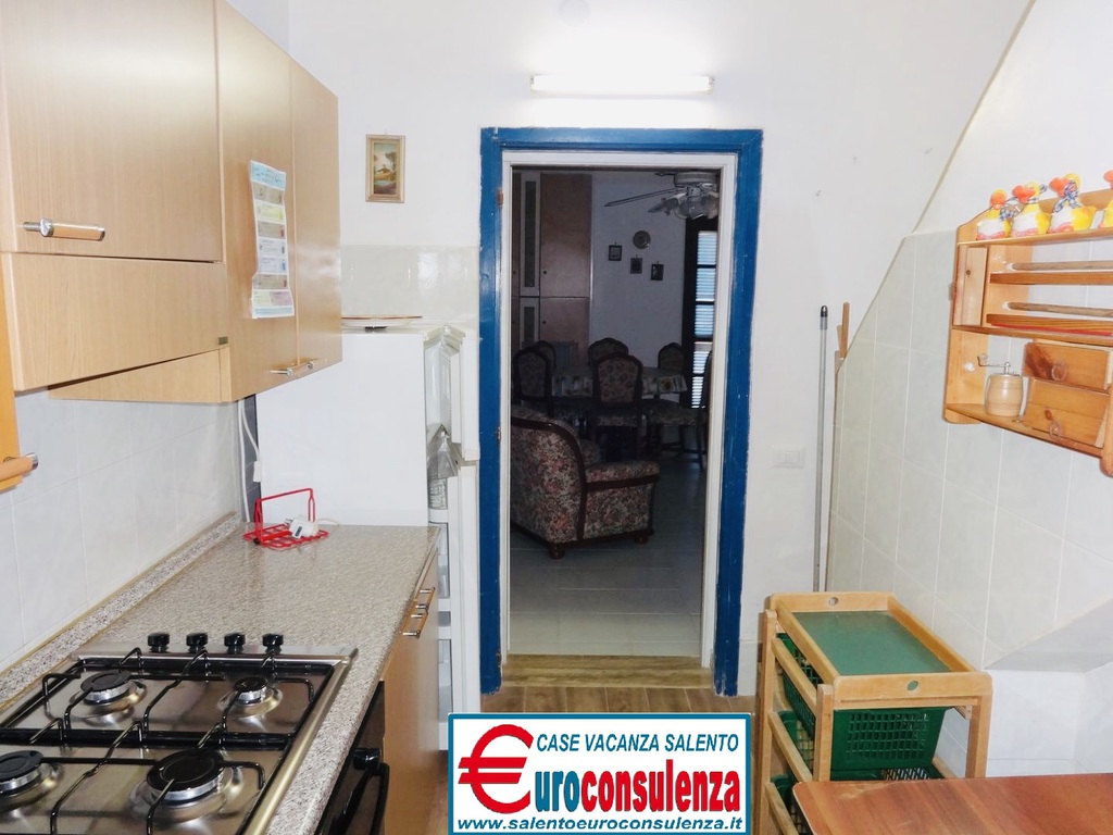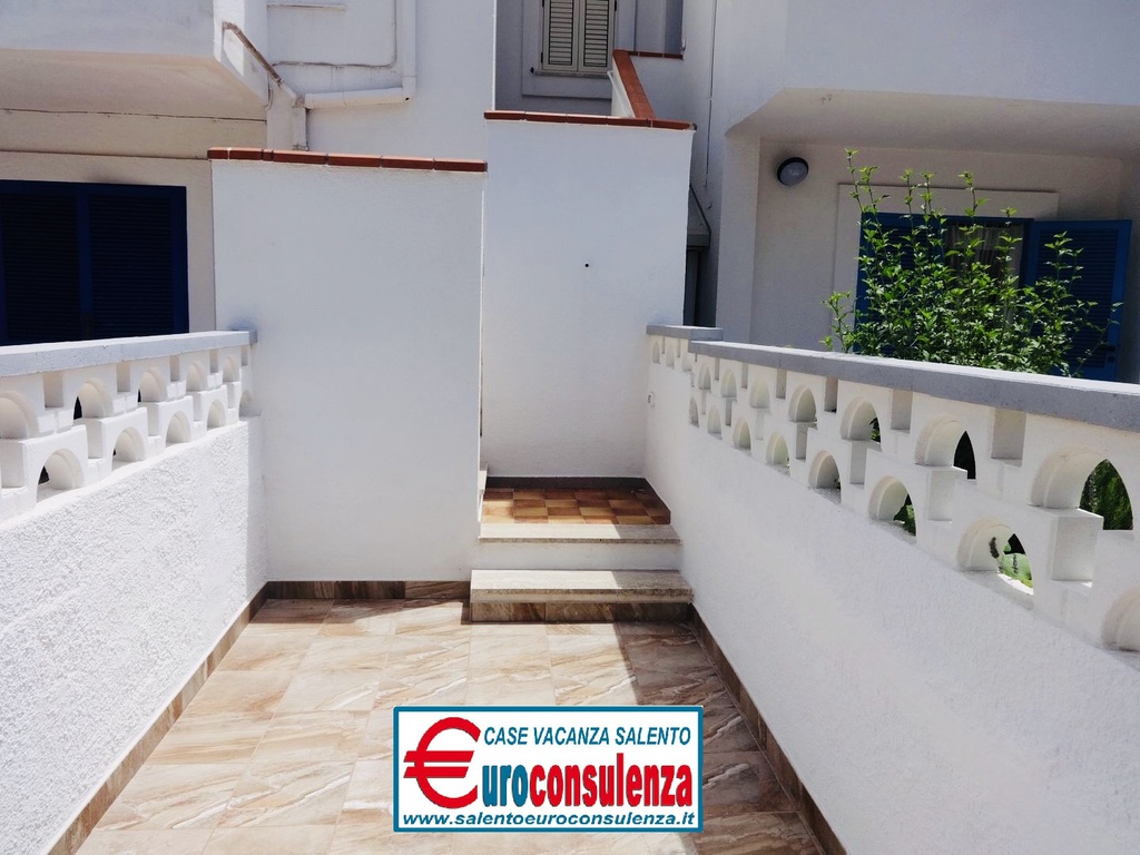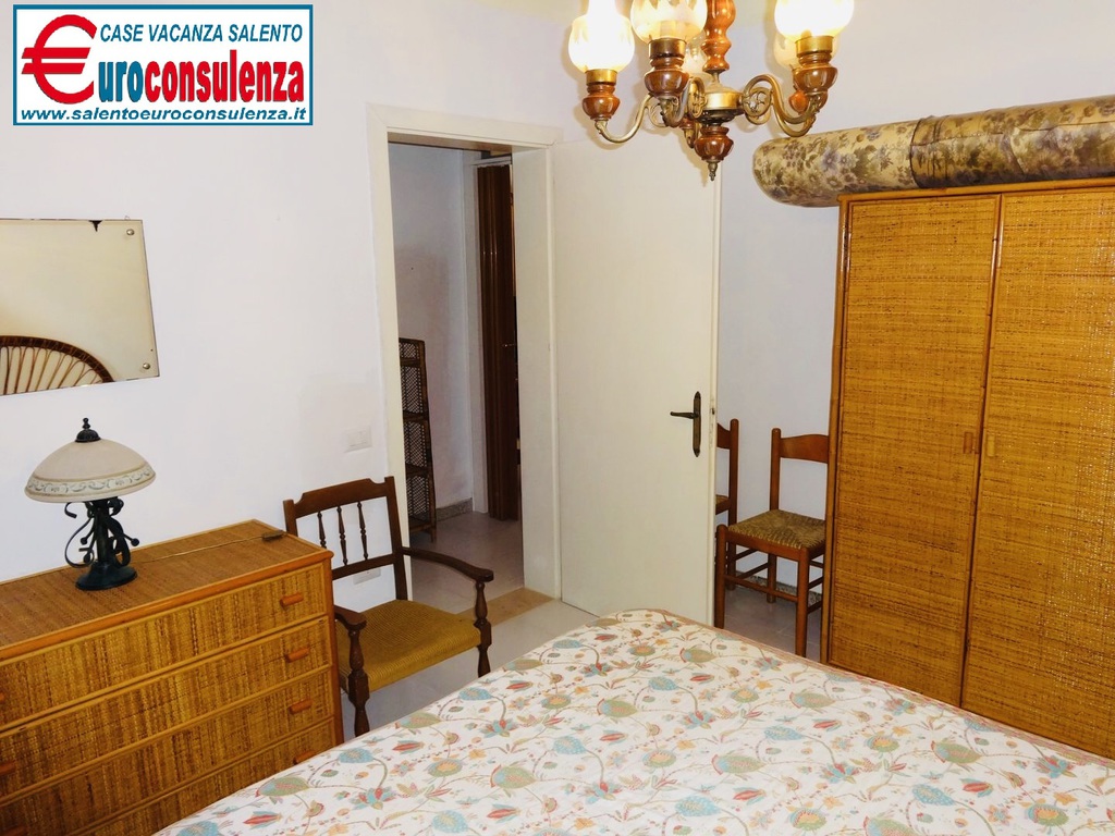 Appartamento con aria condizionata a circa 400 metri dalla favolosa spiaggia composto 2 camere da letto, una con letto matrimoniale e l'altra con due letti singoli, sala pranzo con divano letto, cucinotto, bagno con doccia box, verandina coperta e attrezzata con mobili da giardino per poter mangiare all'aperto, per un totale di 6 posti letto, zona molto ben servita arrivabile a piedi in spiaggia, supermercati, pizzerie, ristoranti, negozi, soluzione ideale per chi intende trascorre le vacanze nel salento in pieno relax e avere tutto a disposizione nelle vicinanze.