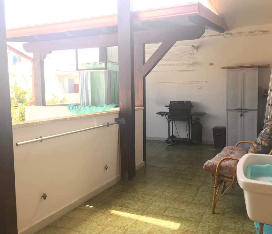 Bellissima casa vacanza al piano primo con condizionatori a 200 metri circa dalla stupenda e finissima spiaggia di Lido Marini si può andare a piedi in spiaggia, composta da tinello con angolo cottura, 2 camere da letto matrimoniali e una anche con letto a castello, bagno con doccia, disimpegno, e ingresso con ulteriori due lettini, ampia veranda coperta dove si può pranzare e cenare fuori utilizzando il barbecue con doccia esterna e lavatrice PER UN TOTALE DI 8 posti letto. Zona molto ben servita a circa 50 metri dal corso principale ideale per trascorrere le vacanze nel Salento e per le famiglie e avere tutti i servizi arrivabili a piedi supermercati, ristoranti, pizzerie, tabacchi, pescheria negozi in genere.