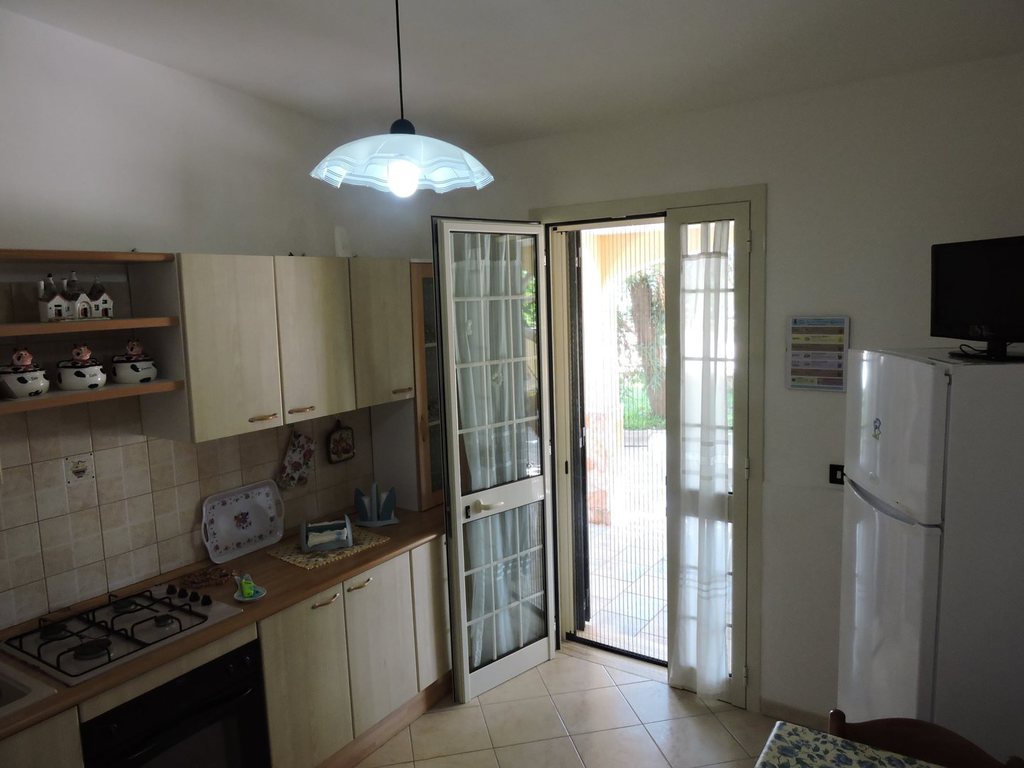 Grazioso appartamento al piano terra a circa 550 metri dalla meravigliosa spiaggia di T.S. Giovanni formato da 2 camere da letto, una con letto matrimoniale e l'altra con due letti singoli, cucina, bagno con doccia, ampia veranda con gazebo dove poter mangiare all'aperto e secondo bagno con doccia. Per un totale di 4 posti letto e 2 bagni, ideale per coloro che vogliono trascorrere le vacanza in pieno relax e andare a piedi in spiaggia.