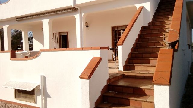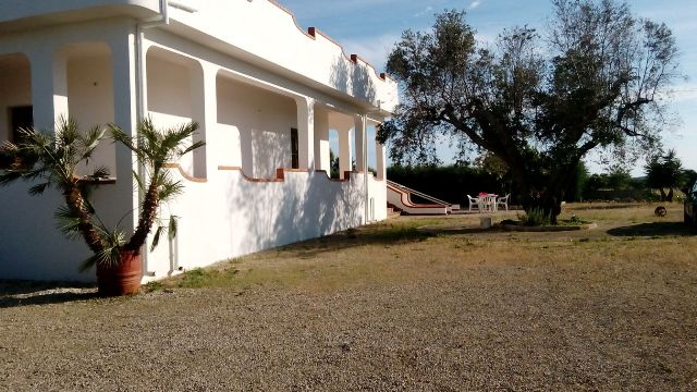 Bellissima villa a Mancaversa circondata dal giardino a circa 500 metri dal mare con calette di sabbia e a pochi minuti dalle spiagge di Gallipoli composta da al piano rialzato ingresso, disimpegno, 3 camere da letto, due bagni di cui uno all’esterno, soggiorno con angolo cottura e divano letto e ulteriore cucina esterna e al piano ribassato una grande camera per un totale di 13 posti letto, tutta circondata dal giardino veranda avanti e sui lati dove poter mangiare fuori e passare le serate insieme utilizzando il barbecue, doccia esterna e lavanderia, giardino perimetrale e posti auto. Zona molto ben servita con farmacia, ristorante nelle vicinanze, pizzerie, bar, tabacchi, parco giochi e villette attrezzate, ottima soluzione per passare momenti di relax a pochi metri dal mare cristallino del Salento e vicinissima a Gallipoli.