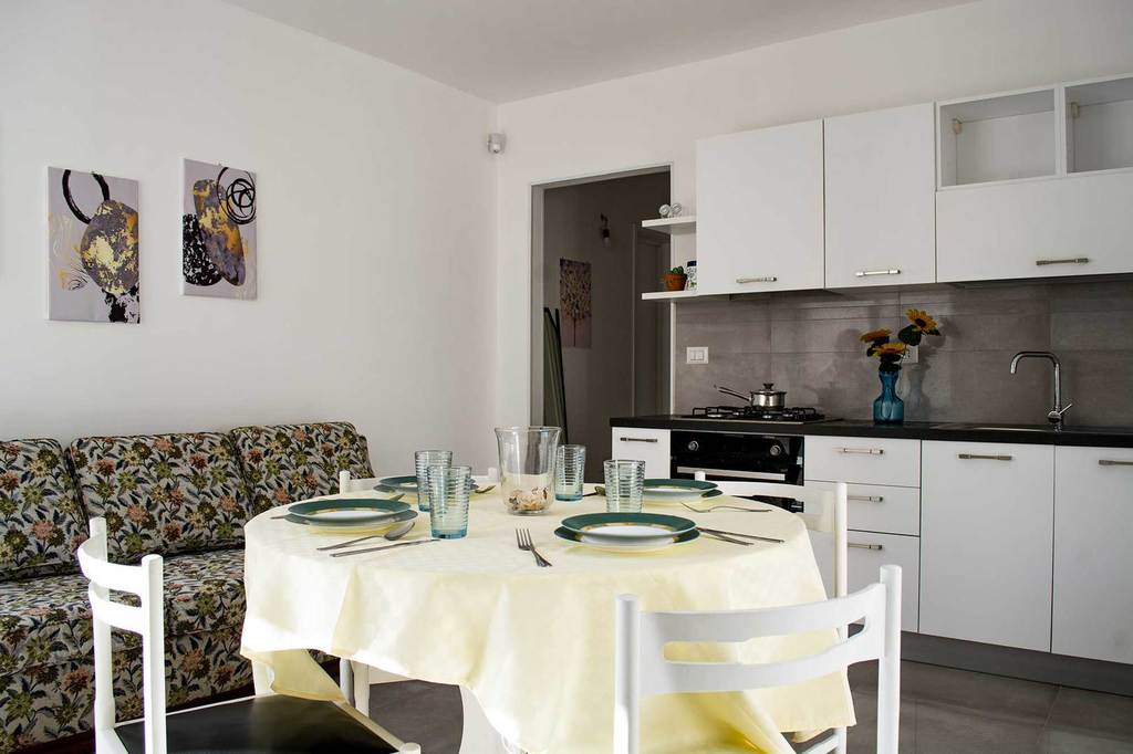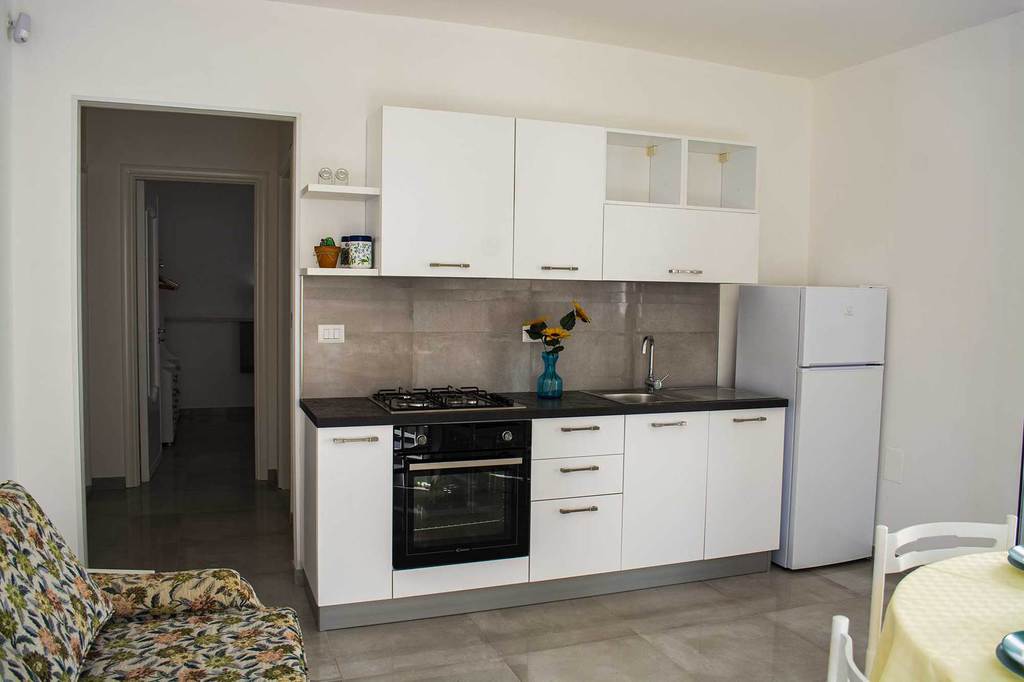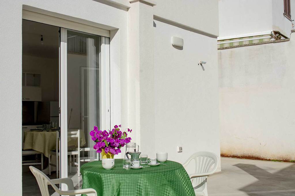 Bellissima e nuovissima struttura di 5 appartamenti case vacanza con aria condizionata. La casa vacanza in affitto al piano terra a circa 150 metri dal mare e a circa 300 metri dalla spiaggetta di sabbia e a 800 metri circa dalla spiaggia di lido pazze si puo’ andare tranquillamente a piedi in spiaggia e composta da: camera da letto matrimoniale, soggiorno con angolo cottura e divano letto singolo tutte con aria condizionata, bagno con doccia, per un totale di 3 posti letto, veranda esterna su due lati con zona ombreggiata e arredata con tavolo e sedie molto comoda per mangiare all aperto in qualsiasi ora del giorno, zona lavanderia con due lavatrici e lavello e doccia esterna. Zona molto ben servita con supermercato, bar, ristorante, pizzeria ecc tutto arrivabile a piedi.