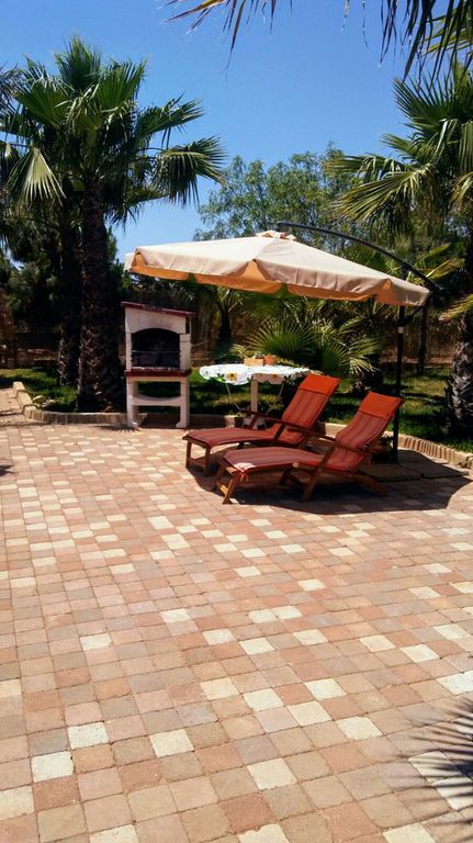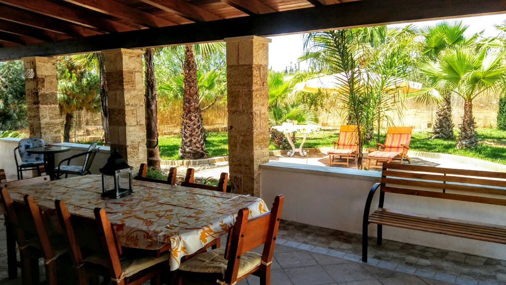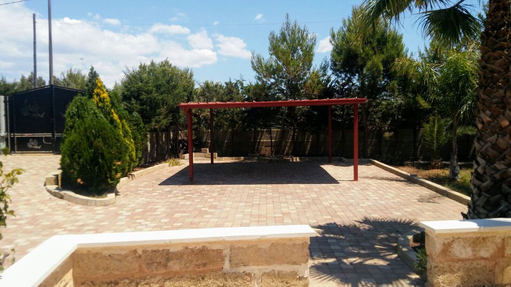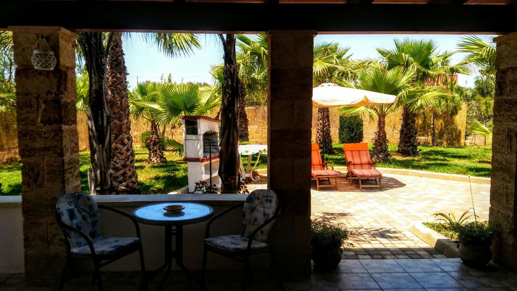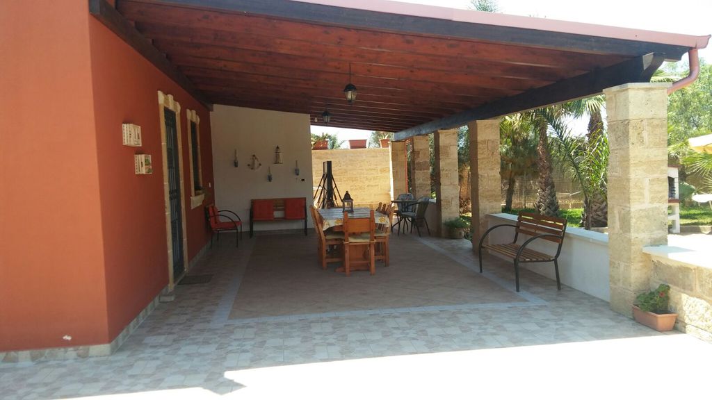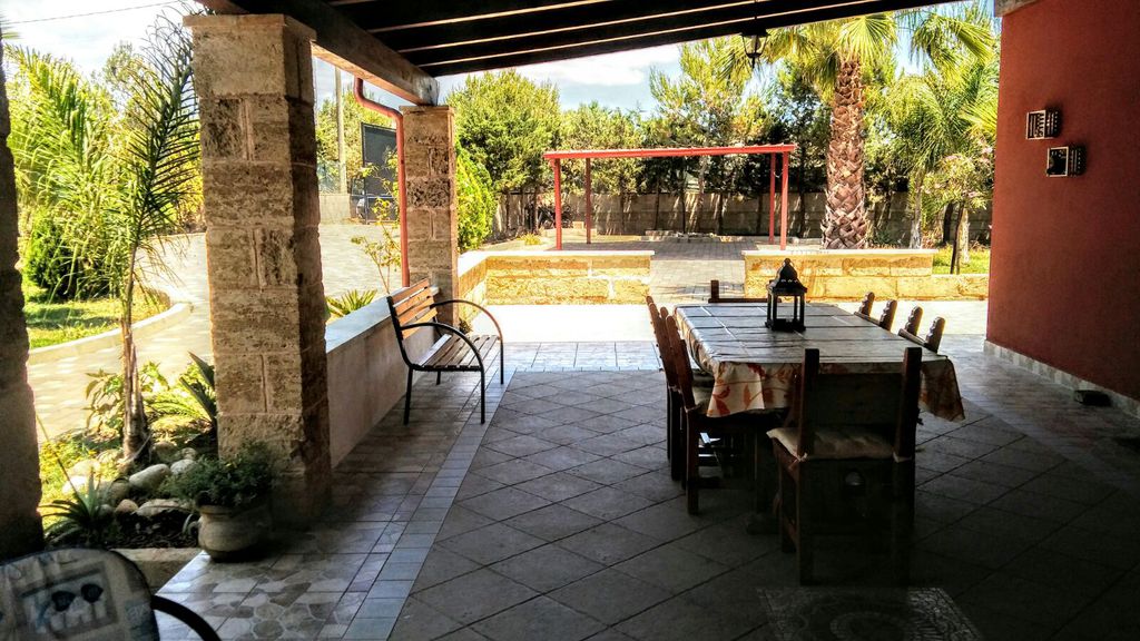 Bellissima villa angolare con due ingressi con aria condizionata a 500 mt circa dalle spiagge sabbiose di T.S. Giovanni, una villa stupenda immersa nel verde tutta al piano terra e formata da: soggiorno/tinello con angolo cottura tutto attrezzato, 3 camere da letto, 2 bagni con doccia di cui uno esterno sotto il gazebo in legno, per un totale di 7+1 posti letto. La villa ha un bellissimo giardino tutto piantumato dove si trovano tutti i mobili da giardino, ombrellone, la doccia esterna, i posti auto coperti e un bellissimo gazebo in legno dove si puo’ pranzare e cenare fuori utilizzando il barbecue. Si mettono a disposizione delle biciclette. Villa completamente indipendente stupenda soluzione per chi vuole trascorrere in completo relax il periodo estivo con nelle vicinanze le piu’ belle spiagge sabbiose del salento.
