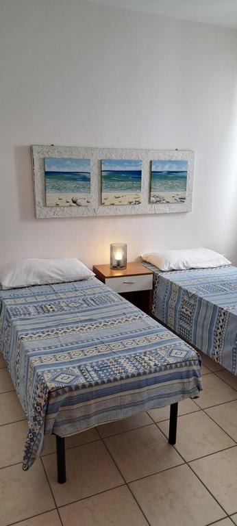 Bellissima casa vacanza in residence con condizionatore al piano primo a Torre San Giovanni a 100 metri circa dal mare e a 350 metri circa dalla spiaggia si può andare tranquillamente a piedi in spiaggia composta da: 2 camere da letto, disimpegno, tinello, cucinino, bagno con doccia, per un totale di 4 posti letto, due balconi dove si può cenare e pranzare fuori, con doccia esterna e parco giochi per i bambini dentro il residence stesso. Zona molto ben servita con supermercato, bar, ristorante, pizzeria ecc tutto arrivabile a piedi.