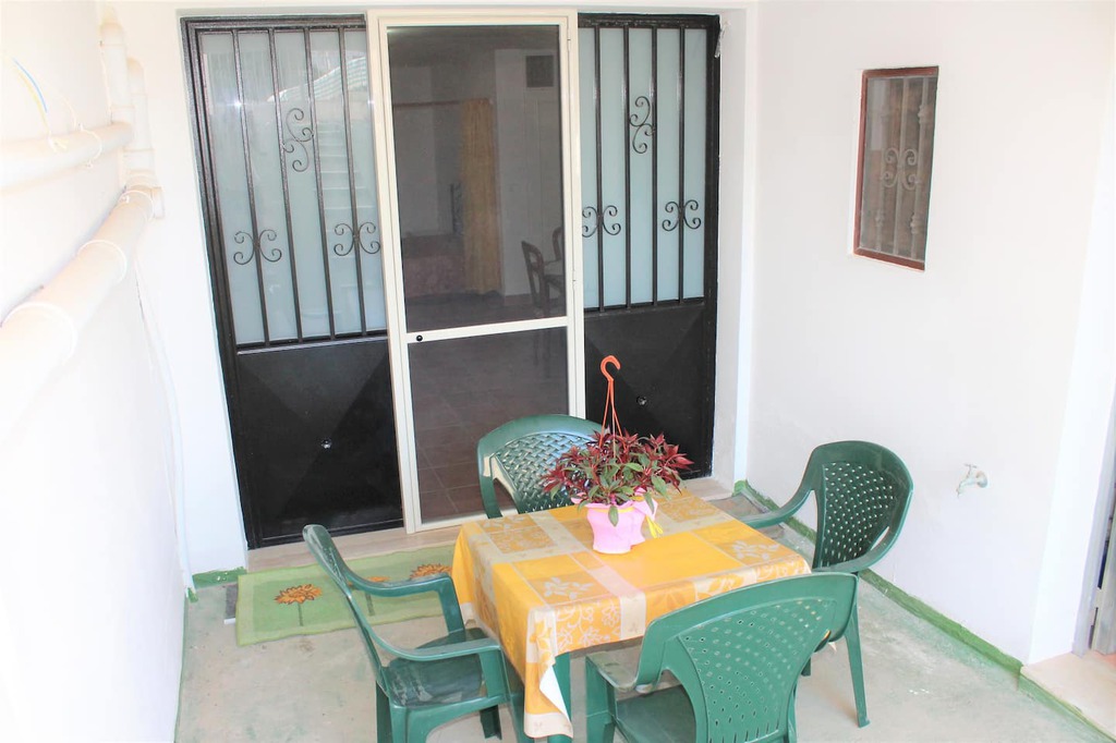Casa vacanza indipendente tipo tavernetta( facente parte di una struttura comprensivo di piano terra che si affitta separatamente) a Torre San Giovanni a 150 metri dal centro e a circa 500 metri dalla spiaggia arrivabile a piedi, composta da camera da letto con un letto matrimoniale e lettino, tinello con divano letto e angolo cottura e bagno con doccia, per un totale di 3+1 posti letto, piccolo cortile avanti dove si puo’ mangiare fuori e utilizzare il barbecue. Zona molto ben servita con supermercato, bar, ristoranti, negozi, pizzerie, farmacia, acquapark, tutto arrivabile a piedi.