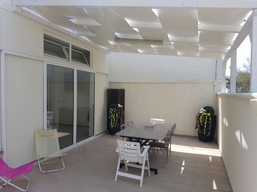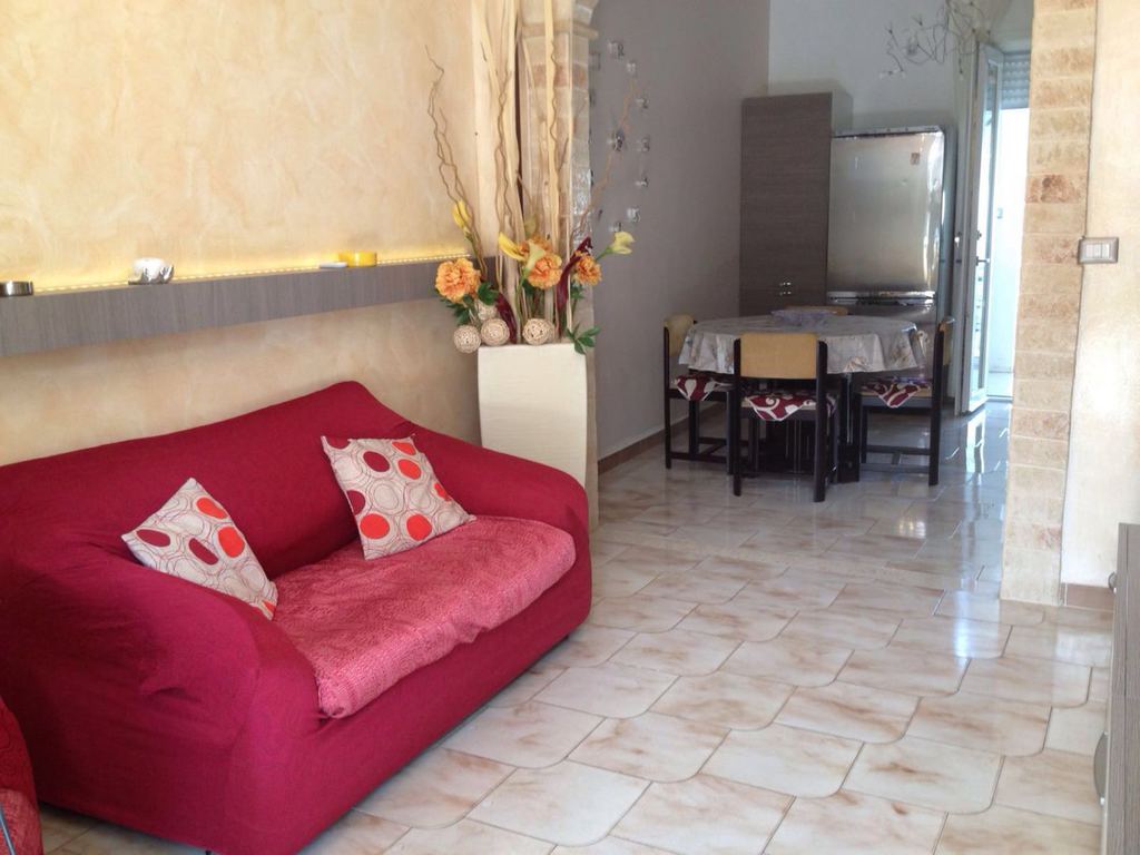 Bellissima casa vacanza zona centralissima con aria condizionata a 30 metri dal corso principale e dal mare e a circa 750 metri circa dalle lunghe distese di spiaggia di T.S.Giovanni formata da 2 camere letto , soggiorno-tinello grande ,cucinino esterno, bagno, stupendo porticato esterno per mangiare fuori e balcone antistante con vista mare per un totale di 6 posti letto,cosi' disposti : in una camera letto matrimoniale e letto singolo e nell'altra camera letto a castello con 3 posti letto soluzione ideale per chi vuole trascorrere in completo relax le vacanze estive e arrivare a piedi in spiaggia senza