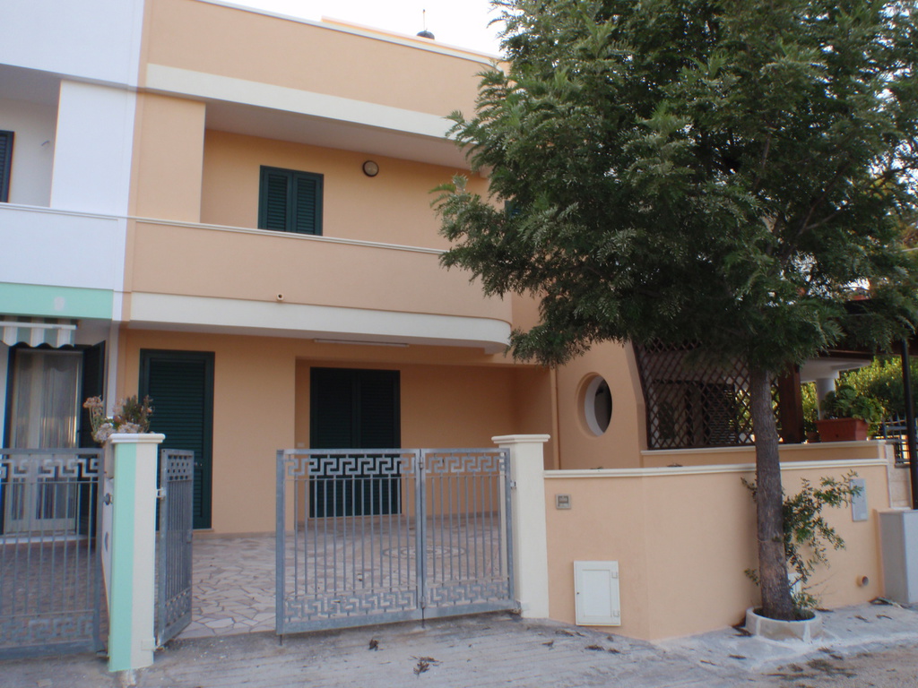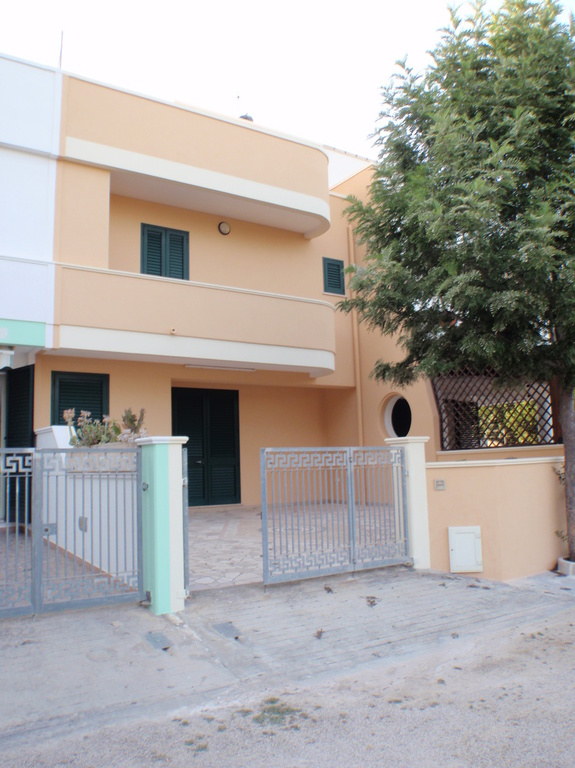 Villetta a schiera indipendente nuova su due livelli a 400 metri circa dal mare e a circa 800 metri dalla prima caletta di sabbia e a circa 2 km dalle lunghe spiagge di T.S.Giovanni formata da: al piano primo tre camere da letto PER UN TOTALE DI 6 POSTI LETTO mentre al piano terra tinello, cucinino, disimpegno tre bagni con doccia uno per piano e uno di servizio esterno nel cortile, posto auto e veranda scoperta avanti e cortile dietro dove poter mangiare fuori in tranquillità. Zona molto ben servita con supermercato, bar, ristorante, tabacchino, pizzeria.