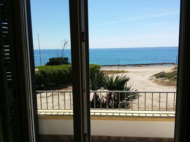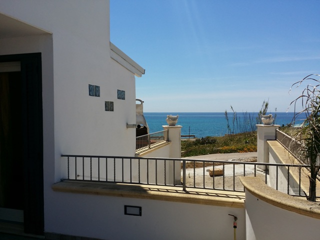 Bellissima casa vacanza indipendente fronte mare a Torre San Giovanni con condizionatore a 30 metri dal mare e a 400 metri dalla spiaggia si può andare tranquillamente a piedi in spiaggia composta da: 2 camere da letto, disimpegno, stupendo soggiorno con angolo cottura salottino e lettino, bagno con doccia, per un totale di 4+1 posti letto balcone avanti e sul fianco con una stupenda vista mare dove si può cenare e pranzare fuori la sera utilizzando il barbecue con doccia esternae posto auto privato. Zona molto ben servita con supermercato, bar, ristorante, pizzeria ecc tutto arrivabile a piedi.