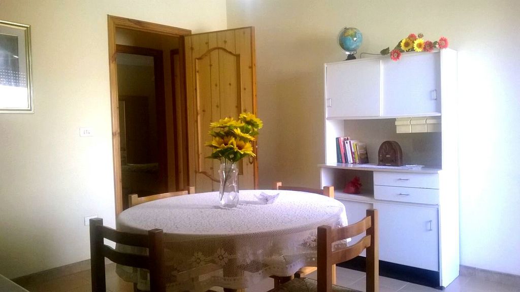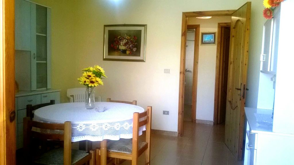 Appartamento al piano rialzato con condizionatore e ingresso indipendente a 200 metri circa dalle lunghe distese di spiaggia di T.S. Giovanni arrivabile a piedi con zona centralissima composta da 2 camere da letto, tinello, cucinino, disimpegno, bagno con doccia, per un totale di 5 posti letto, balcone avanti e cortile dietro dove poter mangiare a pranzo e a cena fuori. Zona centralissima molto ben servita con supermercato, bar, ristoranti, negozi, pizzerie, farmacia, acquapark, tutto arrivabile a piedi.