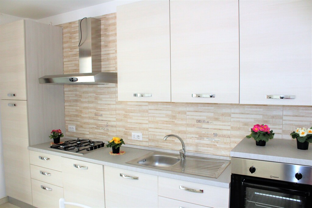 Bellissima e nuovissima casa vacanza con condizionatore indipendente al piano terra a circa 250 metri dal mare e a circa 300 metri dalla spiaggetta di sabbia e a 800 metri circa dalla spiaggia di lido pazze si puo’ andare tranquillamente a piedi in spiaggia composta da: 2 camere da letto, tinello con angolo cottura e divano letto, bagno con doccia, per un totale di 4/5 posti letto balcone avanti coperto con mobili da giardino e cortile dietro dove si può mangiare fuori la sera tranquillamente con lavanderia e doccia esterna. Zona molto ben servita con supermercato, bar, ristorante, pizzeria ecc tutto arrivabile a piedi.