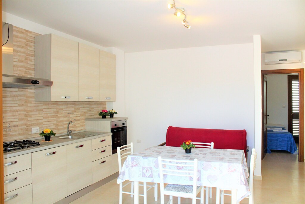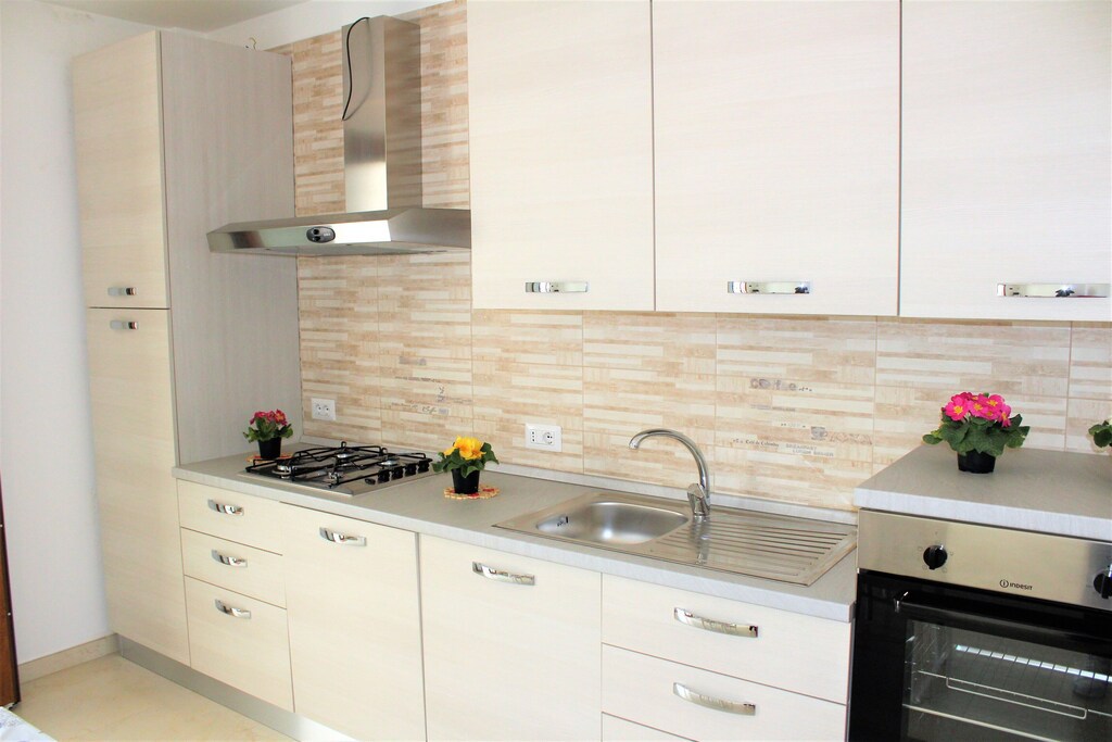 Bellissima e nuovissima casa vacanza con condizionatore indipendente al piano terra a circa 250 metri dal mare e a circa 300 metri dalla spiaggetta di sabbia e a 800 metri circa dalla spiaggia di lido pazze si puo’ andare tranquillamente a piedi in spiaggia composta da: 2 camere da letto, tinello con angolo cottura e divano letto, bagno con doccia, per un totale di 4/5 posti letto balcone avanti coperto con mobili da giardino e cortile dietro dove si può mangiare fuori la sera tranquillamente con lavanderia e doccia esterna. Zona molto ben servita con supermercato, bar, ristorante, pizzeria ecc tutto arrivabile a piedi.