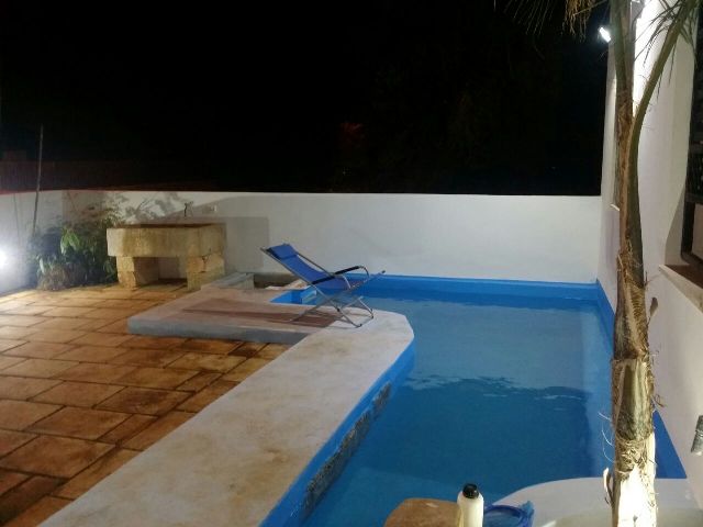 Bellissima villettina con piscina e aria condizionata nella marina di Torre Suda a pochissimi minuti dalle spiagge di Gallipoli circondata dal verde a circa 800 metri dal mare composta da: due camere da letto, tinello con angolo cottura, disimpegno, bagno con doccia, per un totale di 6 posti letto, cortile dietro coperto dove si trova un bagnetto sempre con doccia, giardino avanti con macchia mediterranea e piscina con veranda e gazebo in legno ideale per pranzare e cenare utilizzando il barbecue. Soluzione ideale per famiglie e bambini e per fare una vacanza in pieno relax. Mare con scoglio per chi desidera la spiaggia la può trovare a pochi km