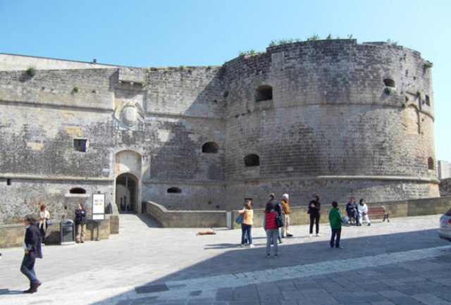 Il maestoso Castello Aragonese, le mura urbiche e le fortificazioni ricostruiti a partire dalla fine del XV secolo, dopo l’assedio Ottomano.L’ingresso nel Castello aragonese avverrà solo se l’intero gruppo deciderà di visitarlo, pagando il ticket d’ingresso. Qualora si decidesse di non entrare, saranno fornite tutte le informazioni storiche e artistiche dall’esterno. La visita guidata del Castello riguarderà solo la struttura e ha una durata di circa 20-25 minuti ma si prevede un tempo di permanenza superiore (circa 45 min) in quanto nel periodo estivo il Castello ospita delle mostre che potranno essere visitate senza guida.